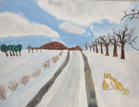 【雪道と狐】